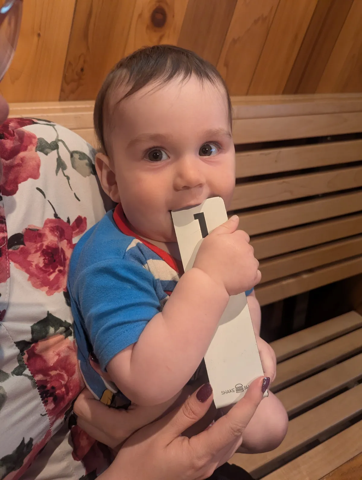 By the time his first birthday rolled around, he had been walking for several weeks, so by then (and especially by now) he really was a pro. It's weird seeing a baby as young as he is walking so confidently, the proportions don't see quite right for that; the doctor was quite impressed. That day he impressed us again by taking all his one year shots like a pro, and hopefully has a degree of immunity to measles now.